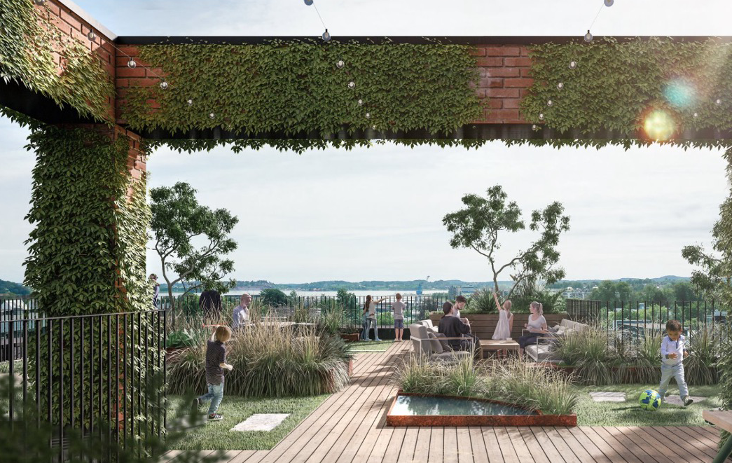 Prosjektet får en flott felles takterrasse med vidstrakt utsikt over hele Tønsberg – et perfekt sted for avslapning, sosiale sammenkomster og å nyte byens atmosfære fra toppen.