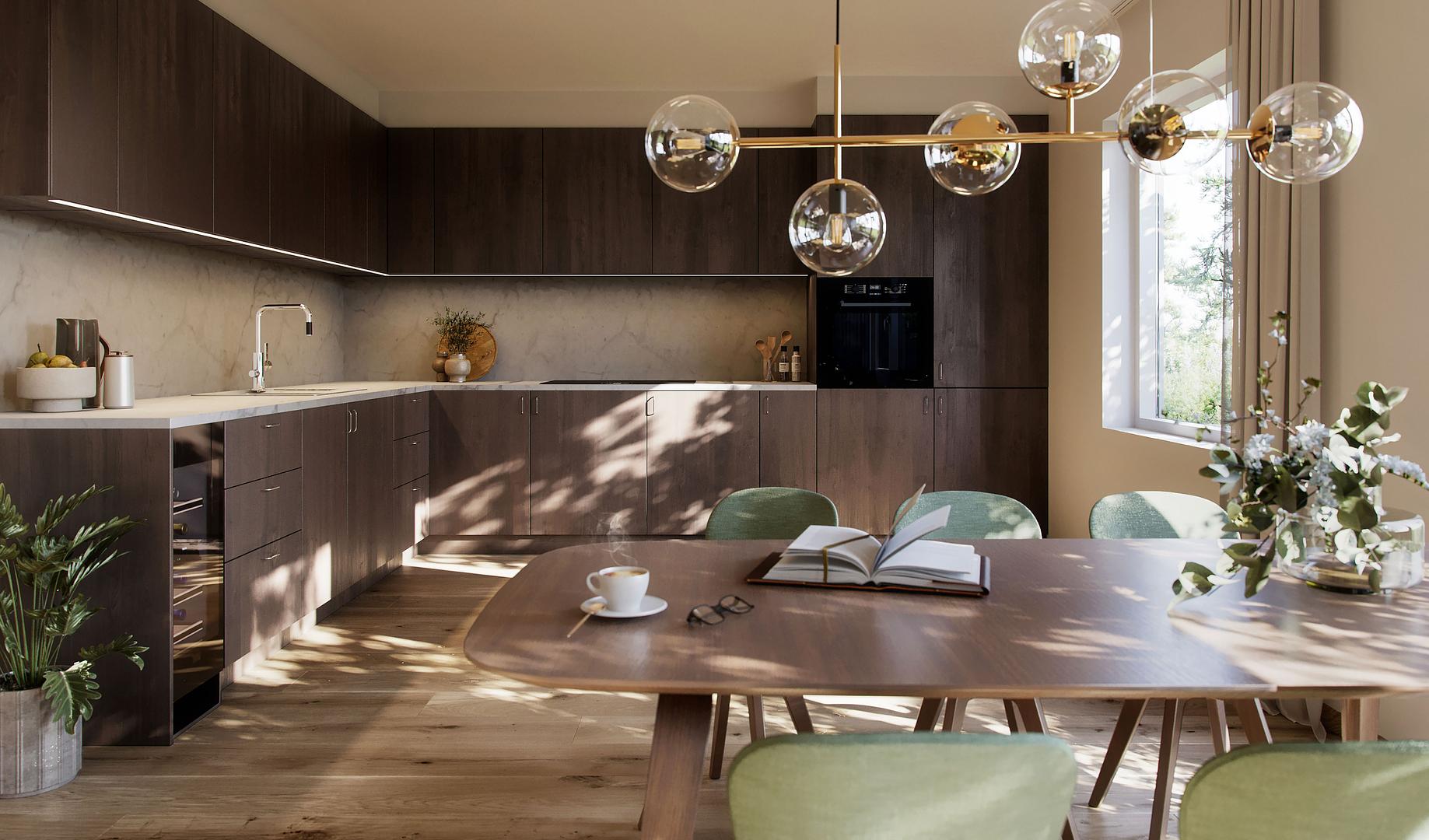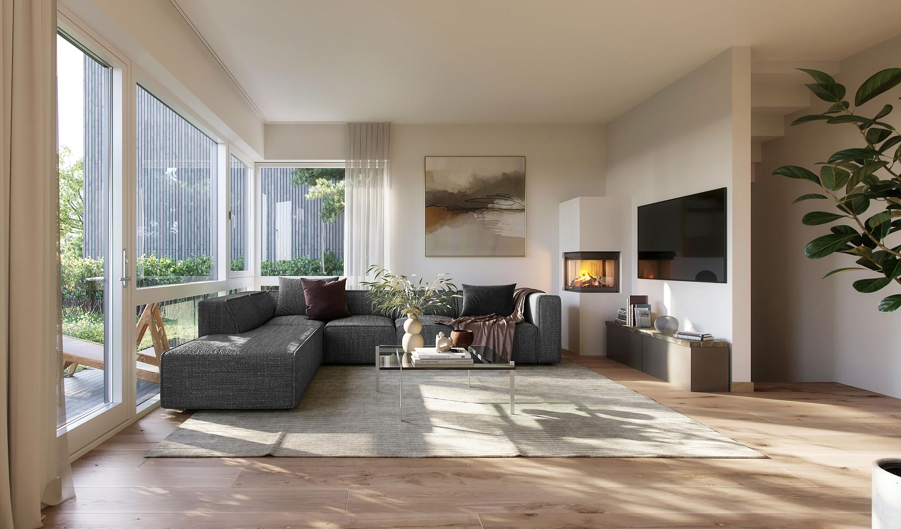 Boligene har gjennomtenkte og luftige planløsninger med romslige oppholdsrom som gir rikelig med plass til både samvær og privatliv. Den mørke utførelsen på interiøret gir boligene et sofistikert og eksklusivt uttrykk.